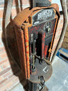 This pump’s tall, narrow profile, exposed pipework, and mechanical internals are typical of pre-war designs. The round dial on the front allowed the attendant and customer to see the quantity being dispensed, reinforcing confidence at a time when fuel measurement was still a developing science.