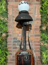 This impressive freestanding unit is an early Bowser mechanical petrol pump, topped with an illuminated “Globe” milk-glass lamp. Pumps of this style were widely used in the first decades of the 20th century and represent the formative years of roadside fuel retailing, before the advent of enclosed electric pumps and modern service stations.