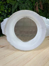 Construction: Moulded milk glass with applied coloured lettering